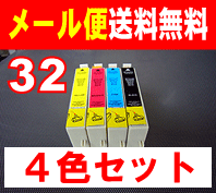 メール便送料無料 メール便速達¥105 宅配便は有料【メール便送料無料4色セット】 EPSON IC32系互換インク◆ICBK32(ブラック)、ICC32(シアン)、ICM32(マゼンタ)、ICY32(イエロー)の4色セットPM-A700 のプリンターに 10P17may10